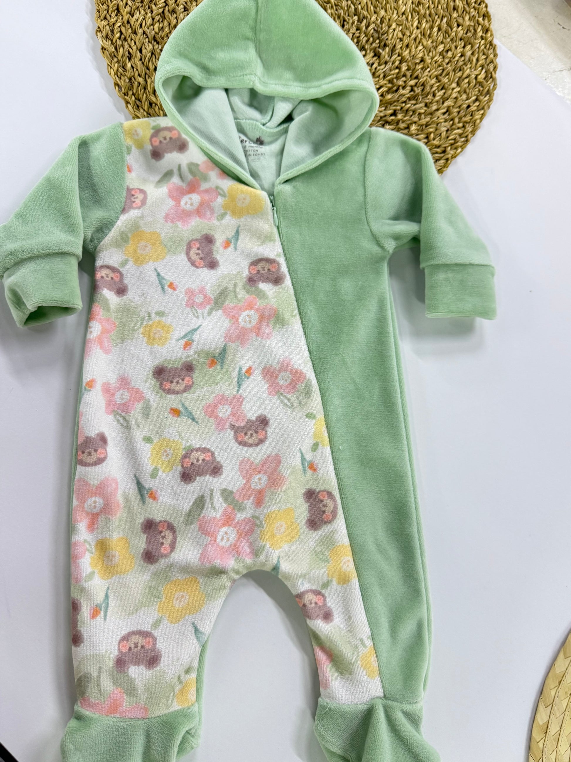 - Hooded long sleeves printed romper